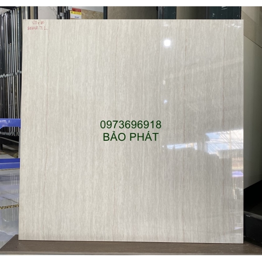 Kích thước gạch 80x80cm, bề mặt bóng kiếng, chất liệu xương đá hai da