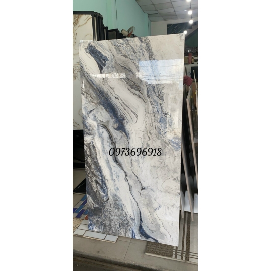 gạch nhập khẩu 60x120 bóng kính khắc kim trung quốc là dòng gạch cao cấp. Vân đá nổi bật, với màu xanh trắng chủ đạo cho không gian sang trọng và thẩm mỹ.